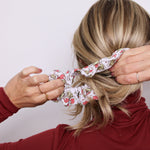 Our mini scrunchies are made with a 5-inch elastic, while all other styles use a 7-inch elastic when stretched. If you need a different size, just leave a note in the comment box or send us a message — every scrunchie is made to order with care.