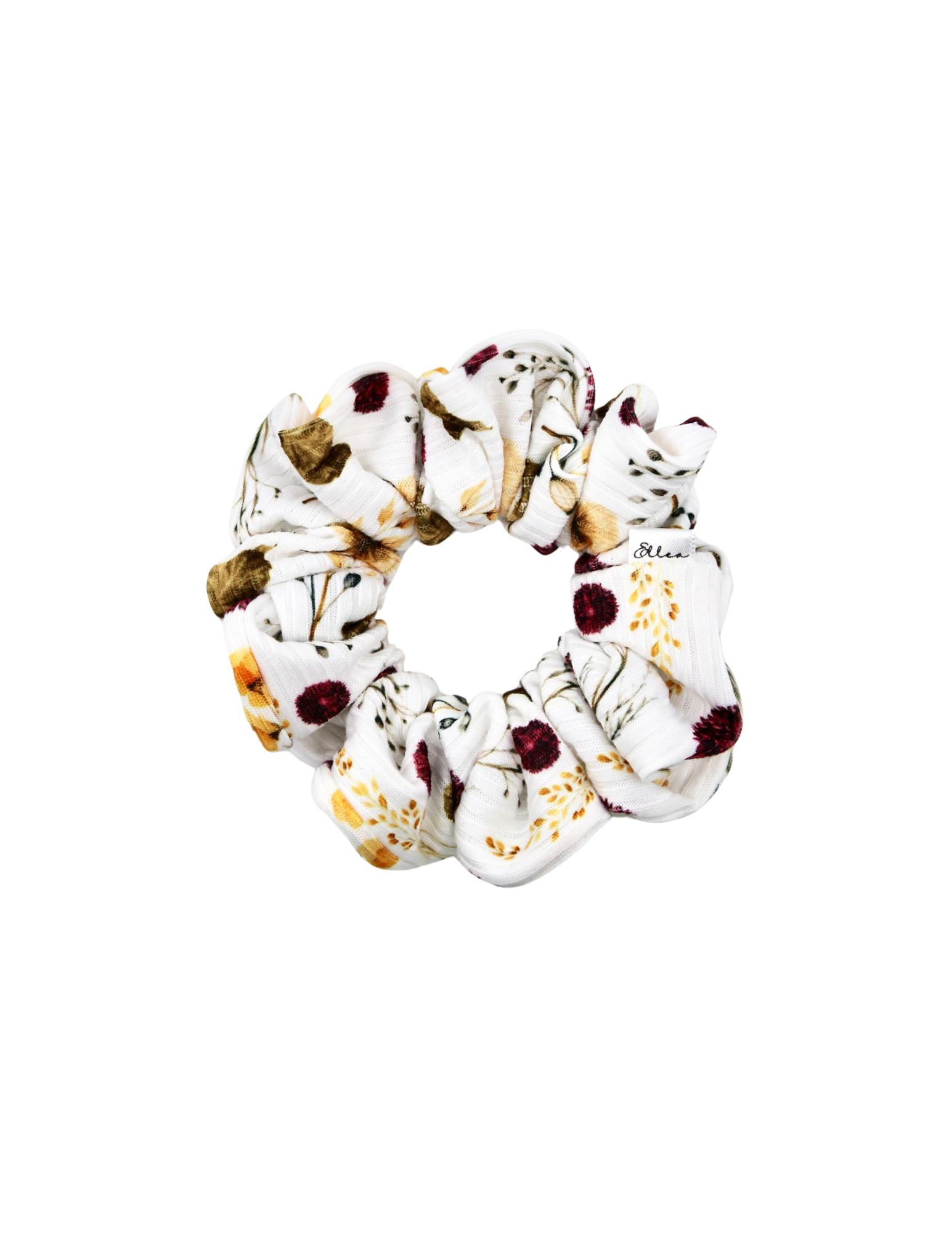 Inspired by dried florals and autumn fields, the Wildflower Ribbed Scrunchie features a soft white base adorned with warm floral details. Its ribbed texture adds dimension while the delicate print brings a cozy, nature-inspired charm. A statement scrunchie that still feels easy and wearable.